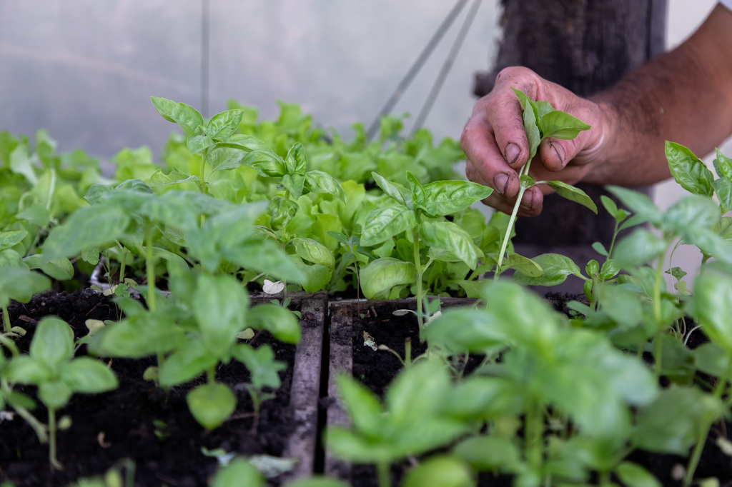Agroecología; Anduín; patagonia; mano; plantin; albahaca