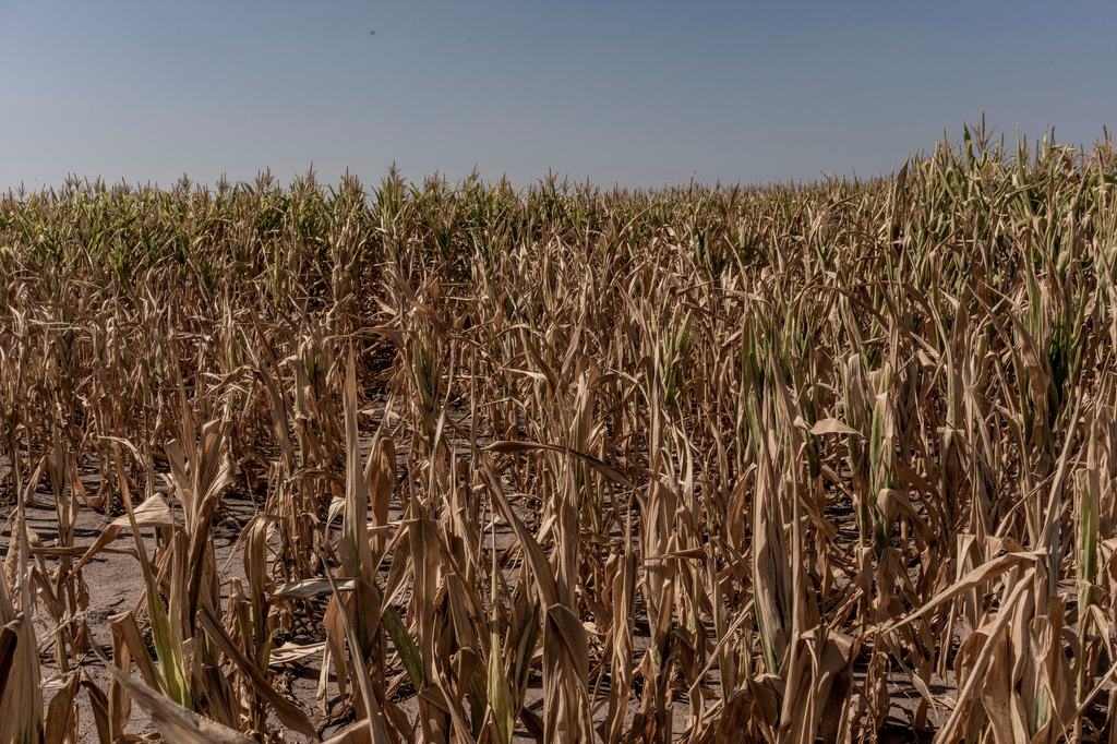Agronegocio; agricultura extensiva; cambio climático; maíz; monocultivo; sequía; tierra; campo; paisaje; choclo; sombra; chala; hoja; horizonte