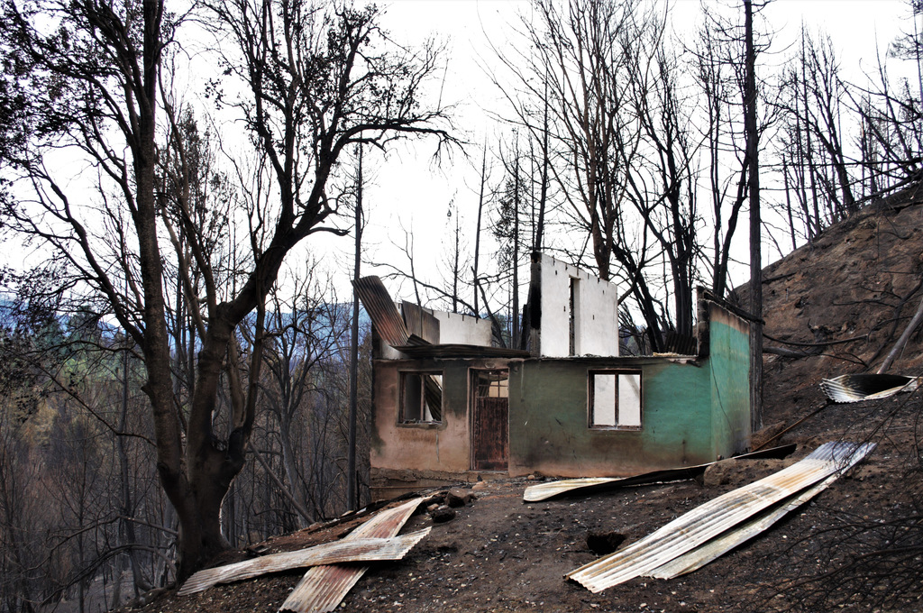 Crisis Clímatica; fuego; Comarca Andina; casco; Patagonia; árbol; casa; siniestro; chapa